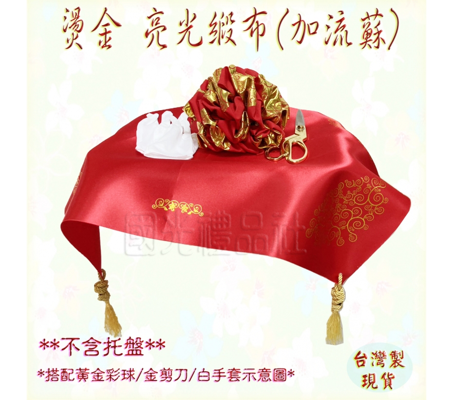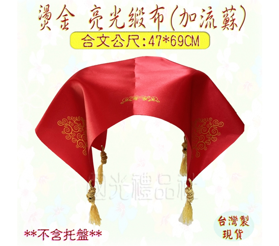 [緞布 紅布 托盤布]燙金亮光緞布(附流蘇)