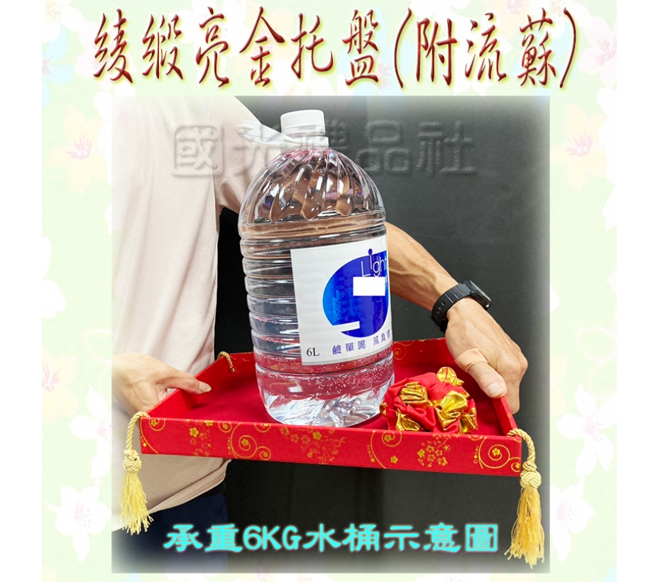 說明: 產地:台灣 顏色:紅色,照片顏色實際商品略有差異,實際以商品為主。 尺寸:約38*28*4CM,流蘇長度約8CM 材質:封面使用超細綾緞布料包邊,柔棉絨感,並外加燙金紋路加工,厚實有質感。 產品說明: 1.喜慶、結婚、開幕、頒獎的好幫手,除了頒獎/剪彩,亦可使用於婚禮儀式,裝大小聘,更顯亮點。 2.可承載5公斤物品。 3.此商品為手工製作,會有些許邊有布鬚,純屬自然現象,如不介意再下標,若收到貨有布鬚只需用剪刀修去即可,勿用手去撕扯它,商品若撕扯導致損毀恕不接受退換哦!